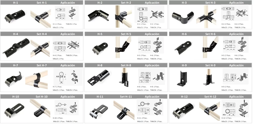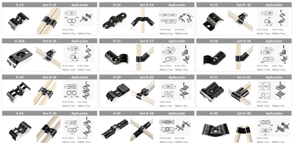 Uniones Metálicas H para Tubería Lean 28mm | Stock Inmediato