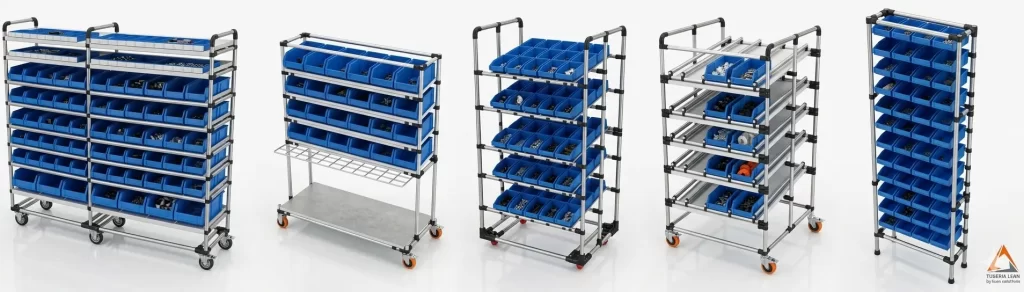Un portafolio de SKU cambia — entran referencias nuevas, salen otras. Una estantería modular en sistema Lean 28mm se reconfigura en minutos sin herramienta especializada ni obra civil.